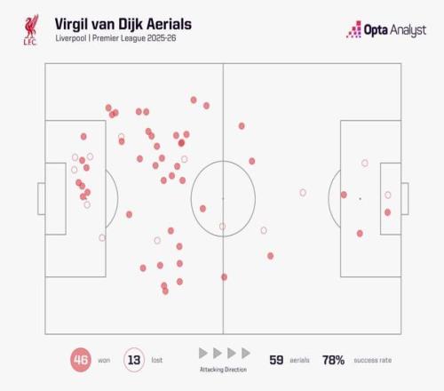 过往利物浦面对这样的局面,就是范迪克一人撑起防空。因为他超强的头球能力和控制面,使得利物浦敢于散开队形,与英超对手空对空对话。 问题是本赛季的范迪克在这方面的效率大幅下降,哪怕数据上看,59次高球一对一赢下46次,成功率高达78%,但实际上对于落点的控制却大不如前。 哪怕把皮球顶出去,却无法确保落在队友控制范围之内,导致随后更大的危机。因为范迪克转身变慢了,回追能力也正在丧失。